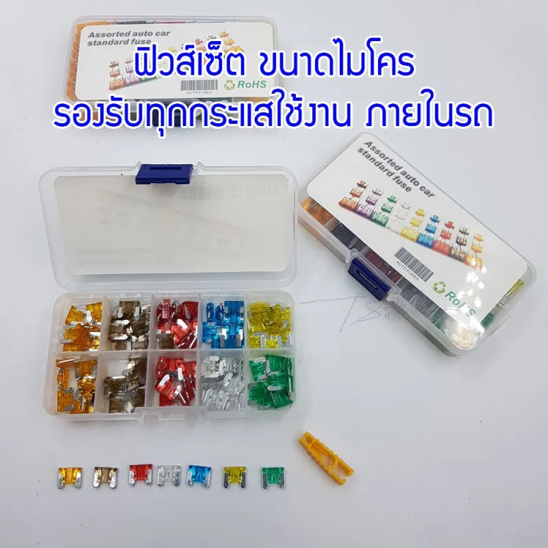 Car Fuse set สำหรับรถยนต์ มอเตอร์ไซค์ เรือ ขนาด Micro Standard และ Mini จำนวน 100 ชิ้น รองรับทุกกระแสการใช้งานในรถ ยี่ห้อ GPSDD