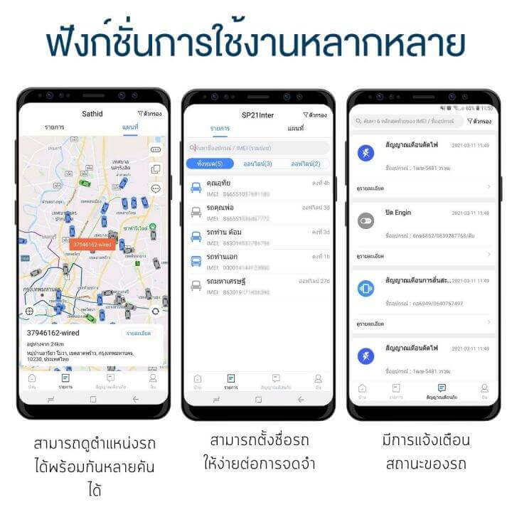 - แสดงรายละเอียด ข้อมูล ตำแหน่งรถอย่างชัดเจนเป็นภาษาไทย