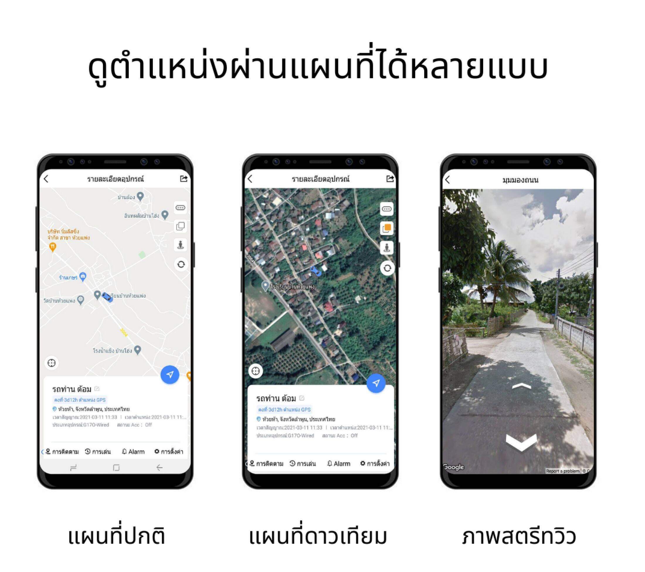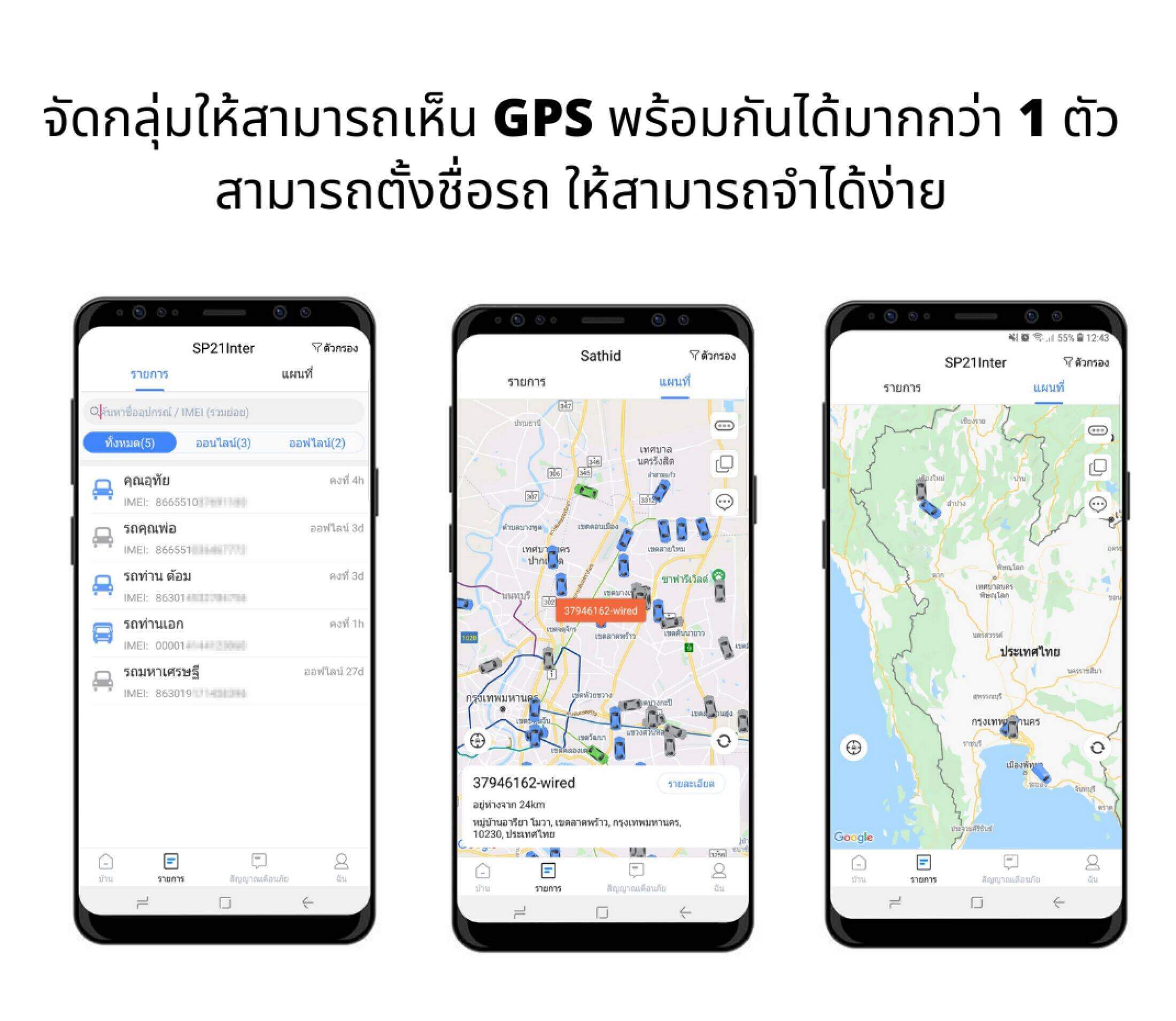 - แสดงรายละเอียด ข้อมูล ตำแหน่งรถอย่างชัดเจนเป็นภาษาไทย