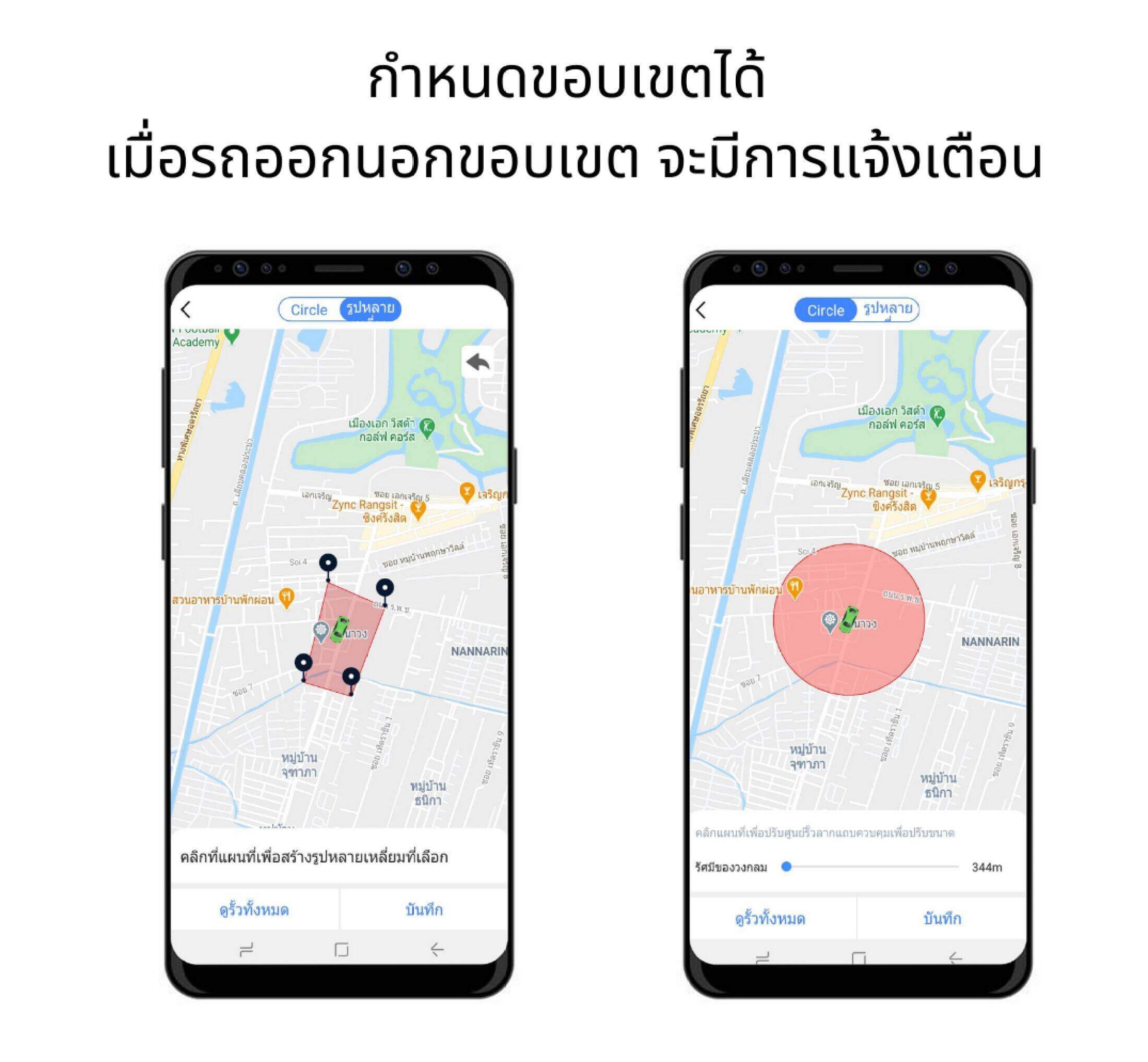 - แจ้งเตือนเมื่อขับรถออกนอกขอบเขต